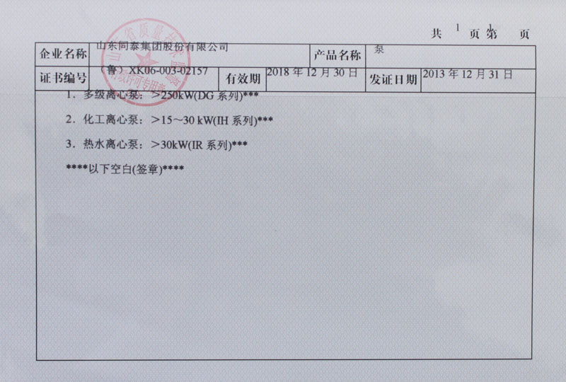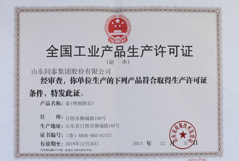 泵類生產(chǎn)許可證